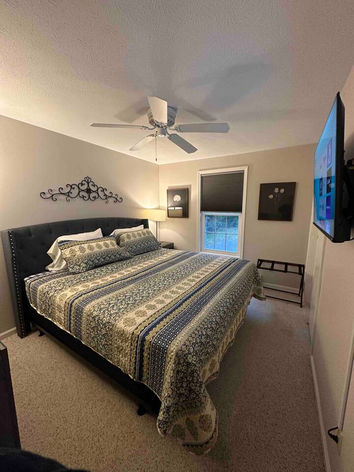 The Space: Your Turn-Key Lifestyle Welcome to Mi Casa Tu Casa, a fully furnished sanctuary designed for travel nurses, remote workers, and extended-stay guests. We have curated this space to be more than just a place to sleep—it is a functional, comfortable home where you can live, work, and relax without skipping a beat. 🌅 Your Private Outdoor Oasis After a long shift, your private backyard is the ultimate place to decompress. Hot Tub: Melt stress away in your private hot tub, available year-round. Fire Pit with a View: Gather around the fire pit to watch the incredible sunset views over Seneca Lake—the perfect way to end the day. Edison Light Patio: Enjoy dinner al fresco on the private patio, illuminated by charming commercial-grade Edison string lights. It features a dining set and a gas grill, ready for your evening cookouts. 🏠 Property Layout & Privacy We are situated on 15 beautiful acres on the Seneca Lake wine trail, ensuring a peaceful and quiet environment. Exclusive Access: You have an exclusive driveway and private entrance. Most importantly, the hot tub, fire pit, and patio are strictly for your private use—you won't be sharing these amenities with anyone else. 🛏️ Bed, Bath & Climate Comfort Sleep is a priority here. The home comfortably sleeps up to 6 people across 3 bedrooms. Bedroom 1: King Bed Bedroom 2: Queen Bed with private Bathroom Bedroom 3: Two Twin Beds Entertainment: Every single bedroom is equipped with a 43-inch Smart 4K UHD TV, so everyone can unwind with their own shows in privacy. Air Conditioning: We ensure personalized comfort. The King and Queen rooms are equipped with their own window-mounted AC units. The Twin room stays cool thanks to the powerful Mini-Split AC unit in the main dining area and a provided standing fan. Laundry: Linens and towels are provided, and you have access to laundry facilities (essential for scrub life!). 💻 Work & Connectivity Reliable connection is a must. We provide fast, high-speed Wi-Fi throughout the home. Workspace: Need to focus? We have a dedicated private desk and workspace located in the basement, offering a quiet environment separate from the main living areas—perfect for Zoom calls or focused charting. 🍳 Chef-Ready Kitchen Long-term stays mean real cooking. Our kitchen isn't just "stocked"—it's equipped for daily life. Appliances: Electric range/oven, microwave, full-size fridge. Gadgets: Instapot/Crockpot (for those slow-cook meals while you're at work), Keurig & Drip coffee makers, blender, waffle maker, and toaster. Basics: Full sets of dishes, glassware, utensils, and baking ware. 🐕 Pet-Friendly Living We know your pets are family. Your four-legged companions are welcome here! The 15-acre property offers plenty of space for walks, and the quiet location reduces stress for anxious pets. 📍 Location & Lifestyle You are in the heart of the action without the noise. Walkable: Stroll to The Elf on the Oak for dinner or Catherine Winery for a tasting. Driveable: Just 5 minutes to Watkins Glen (grocery stores, pharmacy, gas). Explore: Easy access to Ithaca, Geneva, and Corning for day trips.